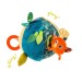 La balle d'activité regorge de gris-gris… Sur les 6 faces colorées on y trouve des feuilles, un papillon délicatement posé, un caméléon agrippé, un poussin suspendu, des rubans et nouettes, et un anneau dentaire pour soulager les poussées dentaires. - Détail du produit