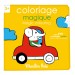 Cahier de coloriage éducatif 1er âge de 20 pages sur le thème des chiffres et couleurs, en français/anglais. L'éléphant Popipop et ses objets du quotidien sont dessinés au trait noir sur fond coloré avec des chiffres reliés à des pastilles de couleur. - Détail du produit