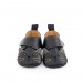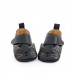 Chaussons en cuir 6/12m avec fermeture à scratch, brodés d'une tête de chat avec ses oreilles rayées. Ils sont doublés, souples, avec une semelle en cuir velours antidérapante et une semelle intérieure amovible avec mousse, pour le confort de bébé ! - Détail du produit