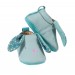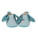 Petits chaussons lapin bleu en cuir et détails textiles de la gamme. Ils sont doublés, confortables, avec semelle en cuir velours antidérapante, thermorégulants, faciles à enfiler et mignon comme tout. - Détail du produit