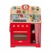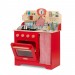 Chouette, une journée aux fourneaux avec la Grande Famille ! Cette cuisinière illustrée en bois comprend tous les accessoires pour préparer de bons petits plats : des ustensiles en métal, une manique vichy, et une plaque de cuisson sonore et lumineuse. - Détail du produit