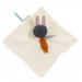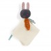 Doudou Lune en lange de coton biologique. Il porte à son cou deux feuilles d'automne, son minois est brodé de fil cuivré et ses oreilles sont en polaire toute douce pour se glisser auprès de bébé. Peut être brodé au prénom de l'enfant. - Détail du produit