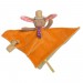 Doudou coloré, en velours, plat, facile à saisir par les petites mains de bébé, avec la petite tête de lapin et son chapeau à pois sur la tête. Il comprend une patte attache tétine et peut être brodé au prénom de bébé. Idéal pour un cadeau de naissance. - Détail du produit