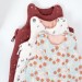 Gigoteuse 0-6 mois (TOG 3) en matières naturelles : lange crème avec motif lapin endormi et feuilles volantes, et doublure en toile 100% coton pour laisser respirer la peau de bébé. Fermeture à glissière et boutons-pression pour un habillage facile. - Détail du produit