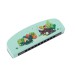 Harmonica en bois peint : un côté nuit avec les animaux de la jungle au repos, l'autre couleur vert d'eau avec Pakou le toucan et ses amis poussins. Il développera l'éveil musical des tout-petits. - Détail du produit