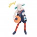 Joyeux compagnon de bébé : poupée mouton miniature vêtue de longues chaussettes rayées, d'un pantalon et d'une tunique ethnique au motif jacquard, avec entre ses petites pattes, son banjo hochet. - Détail du produit