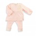 Legging en jersey de coton chiné rose pétale avec taille élastiquée et revers en jersey pailleté. - Détail du produit