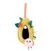 La nuit tombée, l'oiseau rentre dans son nid-cabane qui se suspend par deux liens. On y trouve des accessoires pour éveiller l'intérêt de bébé, du papier crissant dans ses ailes et un joli bruit d'oiseau quand on appuie sur son ventre. - Détail du produit