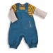 Tee-shirt, coupe droite, rayé gris moutarde, avec jeu d'empiècement donnant un effet de superposition manches courtes sur manches longues en jersey gris chiné moucheté multicolore. Boutons-pression au dos pour un habillage facile. - Détail du produit