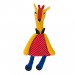 Poupée girafe, la « toute grande » des Popipop, corps en velours éponge jaune bouton d?or, museau et yeux dessinés. Elle porte une robe courte, rouge à pois blanc, très Sixties sur des collants en jersey bleu électrique. - Détail du produit