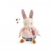 Poupée souris musicale fredonnant des airs japonais, en tissu chambray crème avec de grandes oreilles en polaire. Elle est vêtue d'un panty rayé et d'une blouse rose en lin. La boîte à musique s'enlève pour pouvoir la passer en machine. - Détail du produit