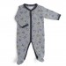 Pyjama 3 mois en jersey de coton gris à motifs têtes de chats Les Moustaches, avec ouverture en Y par boutons-pression sur le devant, et biais gris foncé pour la finition. Il enveloppera bébé de douceur pour toute la nuit. - Détail du produit