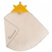 Cape de sortie de bain en matière éponge bouclette moutarde. La capuche en forme de tête de renard comporte au sommet des plumes avec des broderies délicates. Peut être brodé au prénom de l'enfant. Idéal pour un cadeau naissance. - Détail du produit